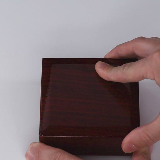 Your piece is lovingly packaged in a complimentary soft touch box for easy gifting. Elevate your presentation by upgrading to the mahogany style luxury box, which features a brilliant LED spotlight.